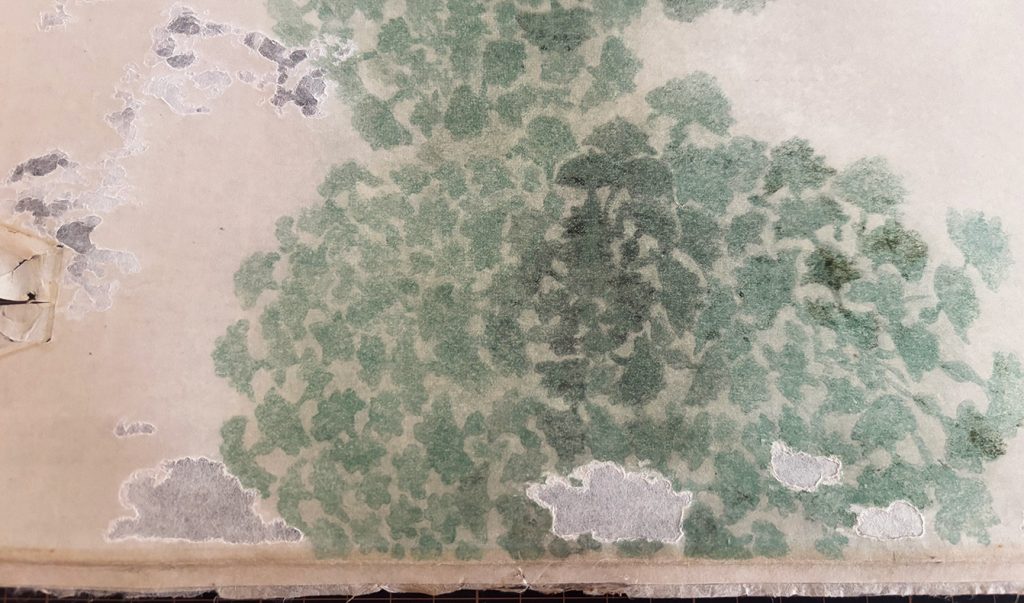襖絵修復(虫喰い欠損部の和紙繕い・補彩)