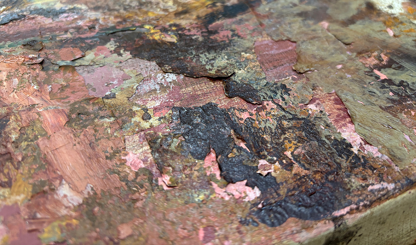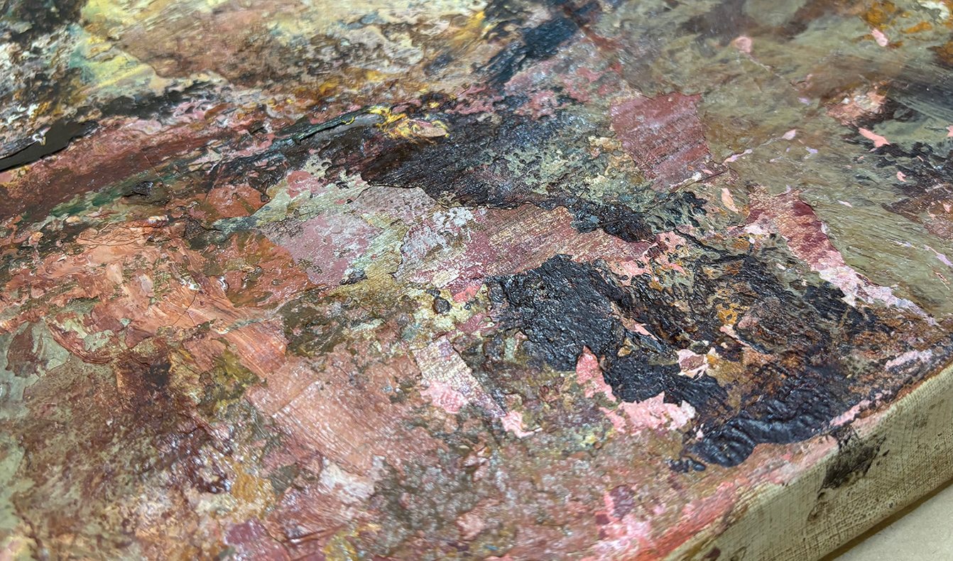 油彩画修復(剥離した絵具の固着)